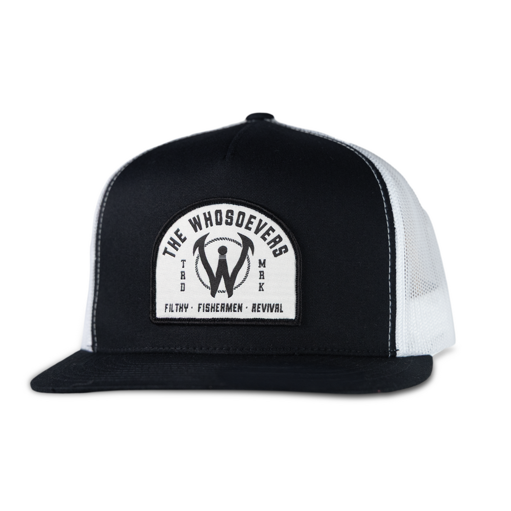 The Whosoevers Filthy Fisherman Trucker Hat Features A 5 Panel Classic Trucker, Custom Patch On Front Panel With A Mesh Backing, An Adjustable Snapback Closure With A "W" Flag Woven Label At The Backside.
