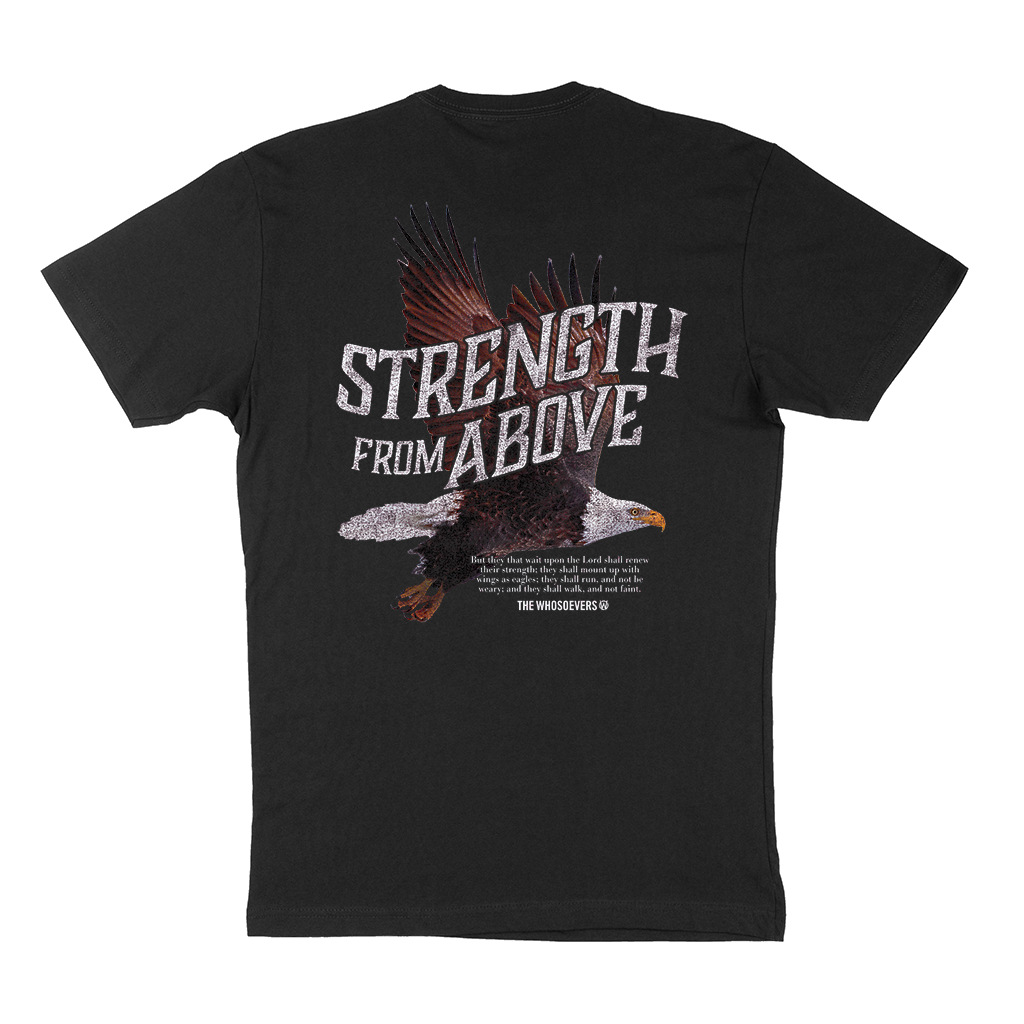 The Whosoevers Strength From Above Premium T-Shirt Features A Back Screen Print, Front Chest Screen Print And Screened Inside Neck.