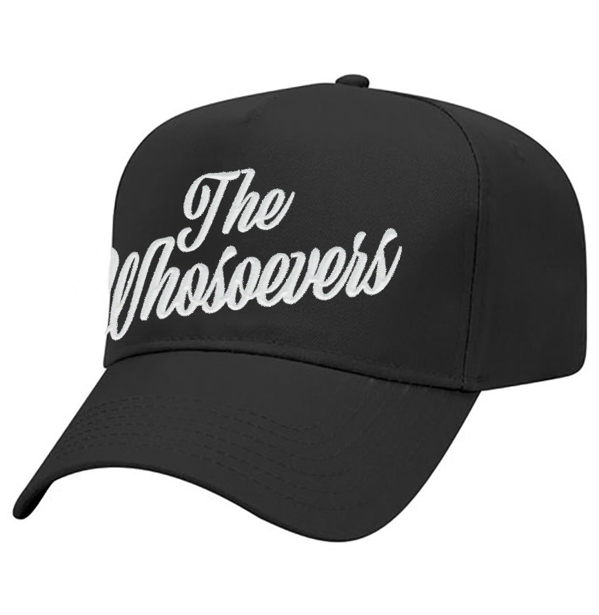The Whosoevers Script Snapback Hat Features A 5 Panel Mid Profile Baseball Cap, Custom Embroidery on Front Panel, An Adjustable Snapback Closure With A "W" Flag Woven Label At The Backside.
